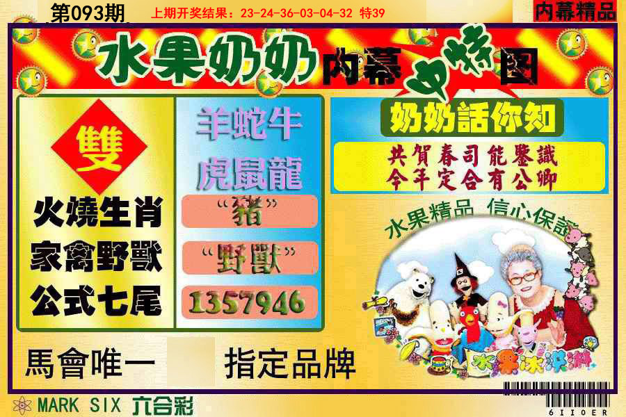 093期: 【狗牛兔马猴鼠蛇猪鸡】 开? 00准